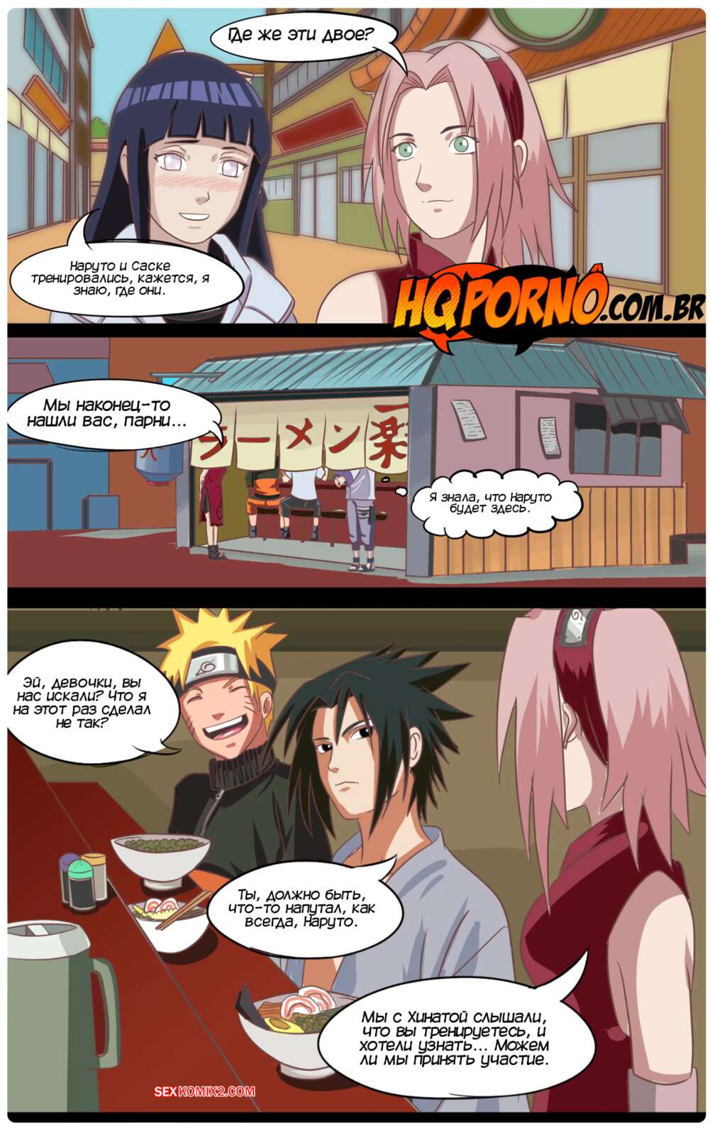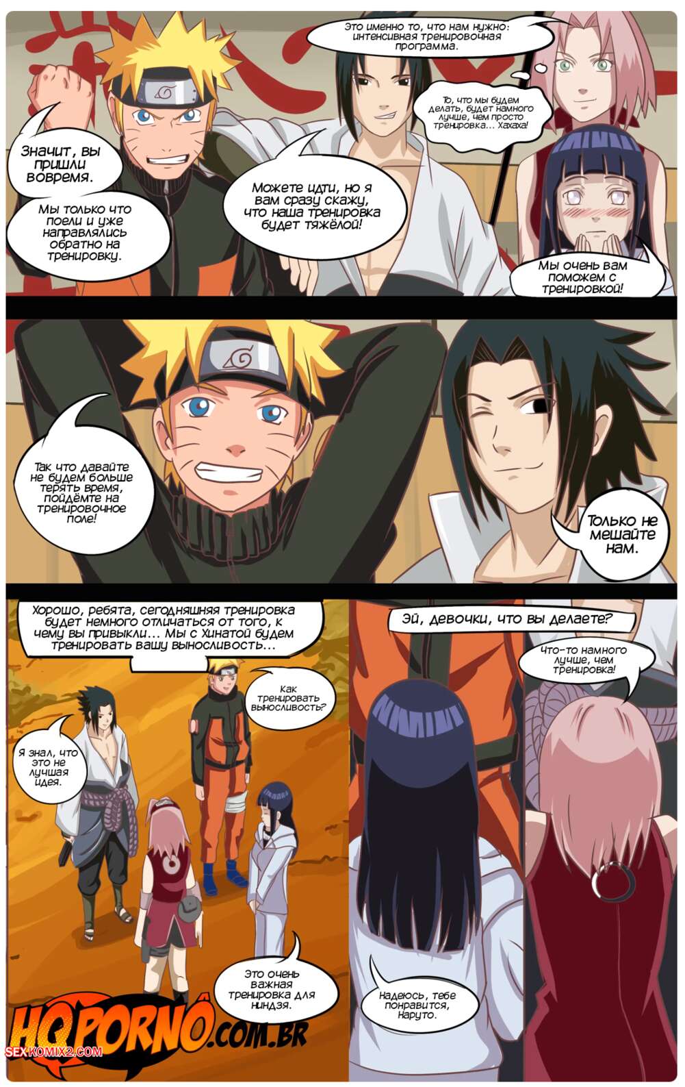 Порно комикс Наруто. Часть 3. Narutu. HQPorno Хината и Сакура стали спорить кто из них сексуальнее, поэтому решили устроить соревнование. Девушки соблазняют Наруто и Саске, чтобы трахнуться с ними и выяснить кто горячее.