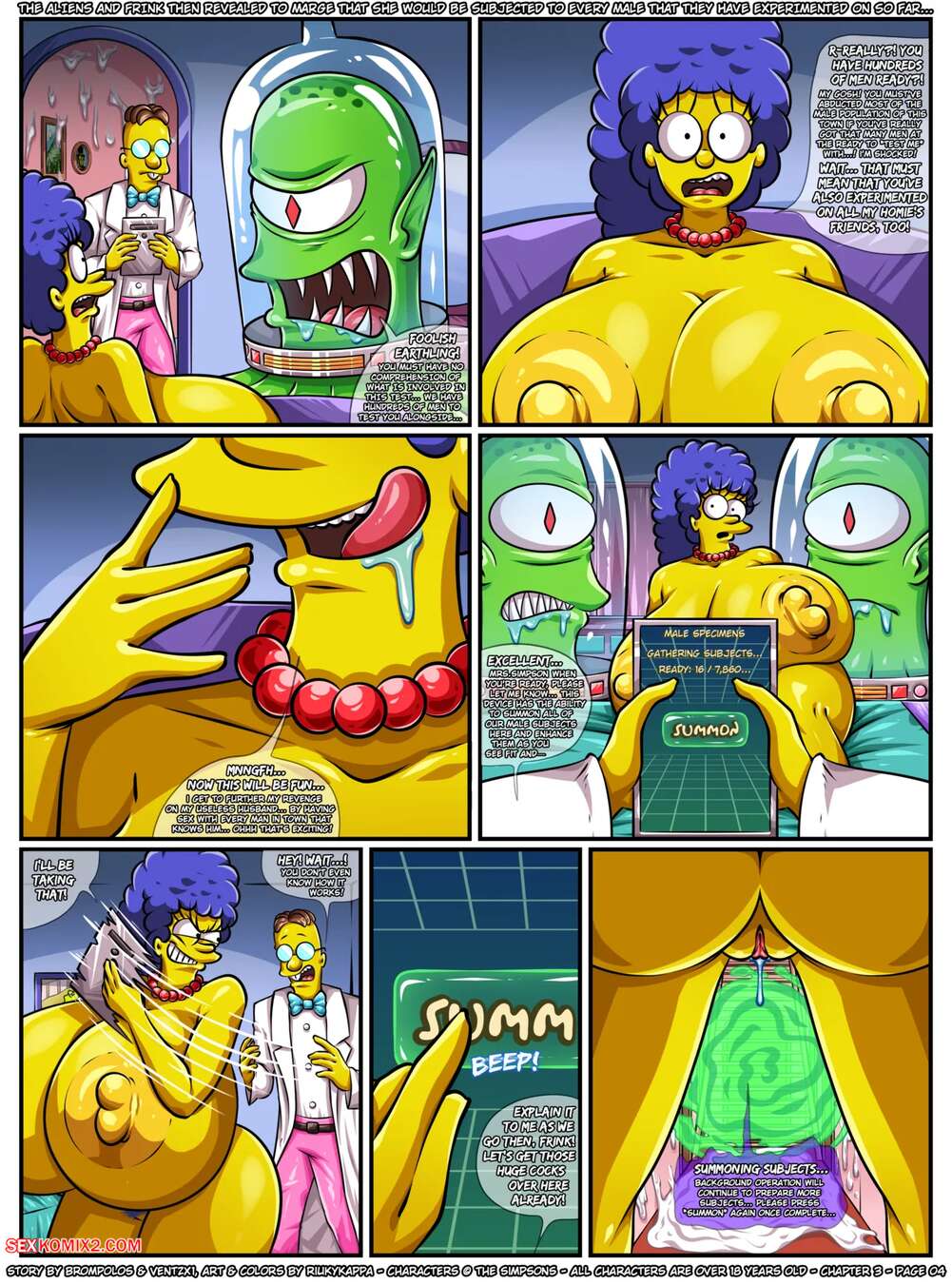 Updated. Porn comic The Sexensteins 3. Brompolos, Riukykappa The aliens are serious about continuing their experiment. They need more subjects, so theyre including the Marge sisters in the research.