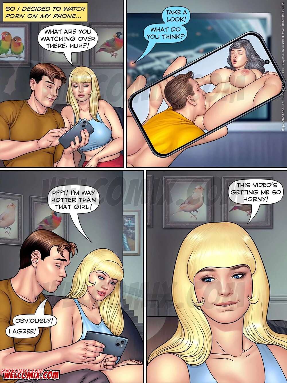 Porn comic A Horny Hot Cousin. Chapter 10. WC TF The whole family went to bed, but Luis and Priscila stayed in the living room. The guy started watching porn, and the girl got excited. She let Luis suck her tits, then took Cousins penis in her mouth and gave him a good blow job. But the guy couldnt keep it up, so he asked Pri to have sex.