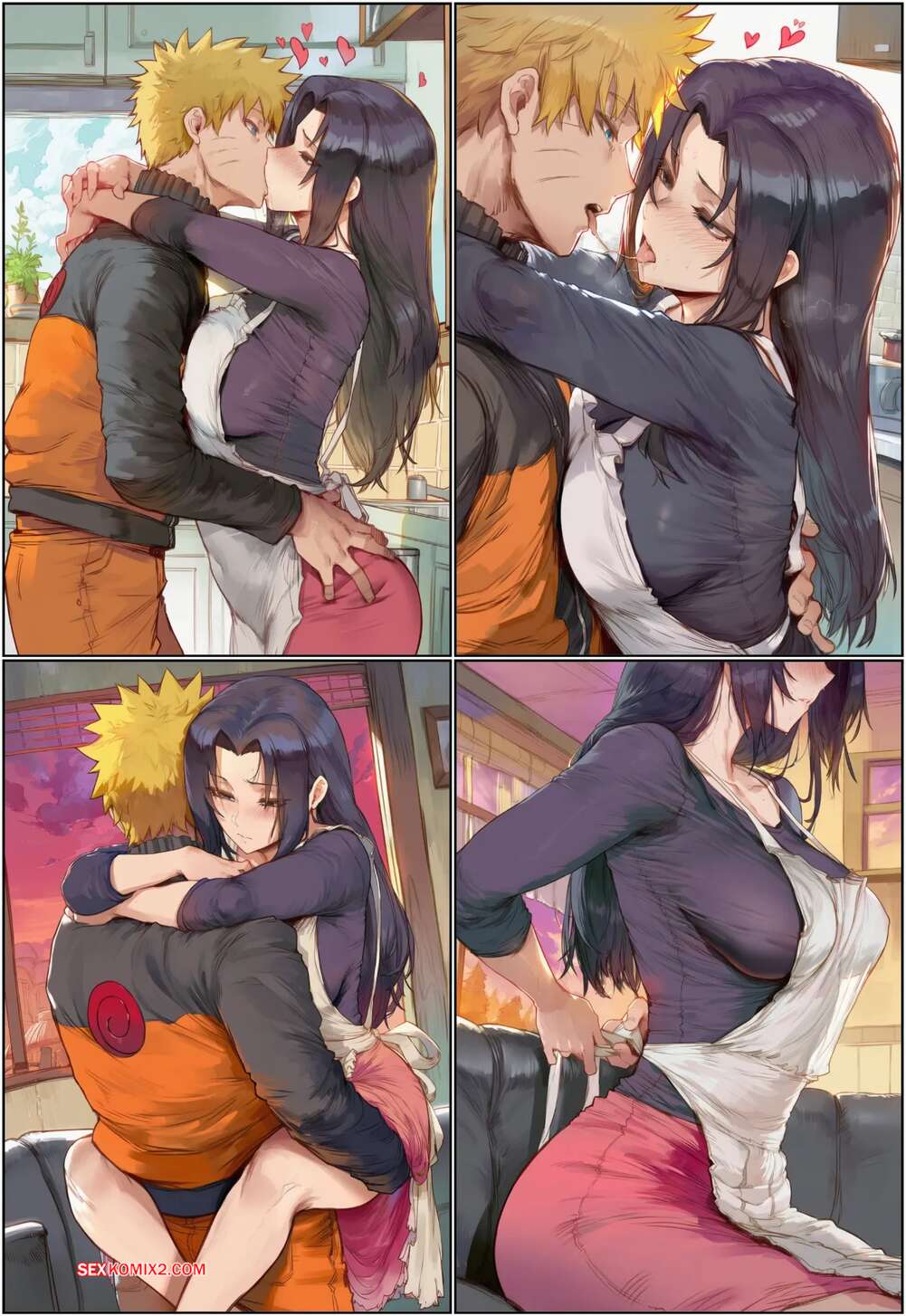 Comic porno Naruto X Mikoto. Swirlinghawk La atractiva morena estaba ocupada cocinando, pero Naruto quería sexo y comenzó a acariciarla. La puso de rodillas y la dejó chuparle la polla, luego la folló.