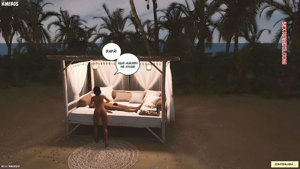 Comic porno BUCKET List. Parte 14. Himeros Linda se quedó en la playa con su padre. La belleza ya estaba mojada, así que papá le metió su gran polla y empezó a follarle el coño a su hija, haciéndola correrse.