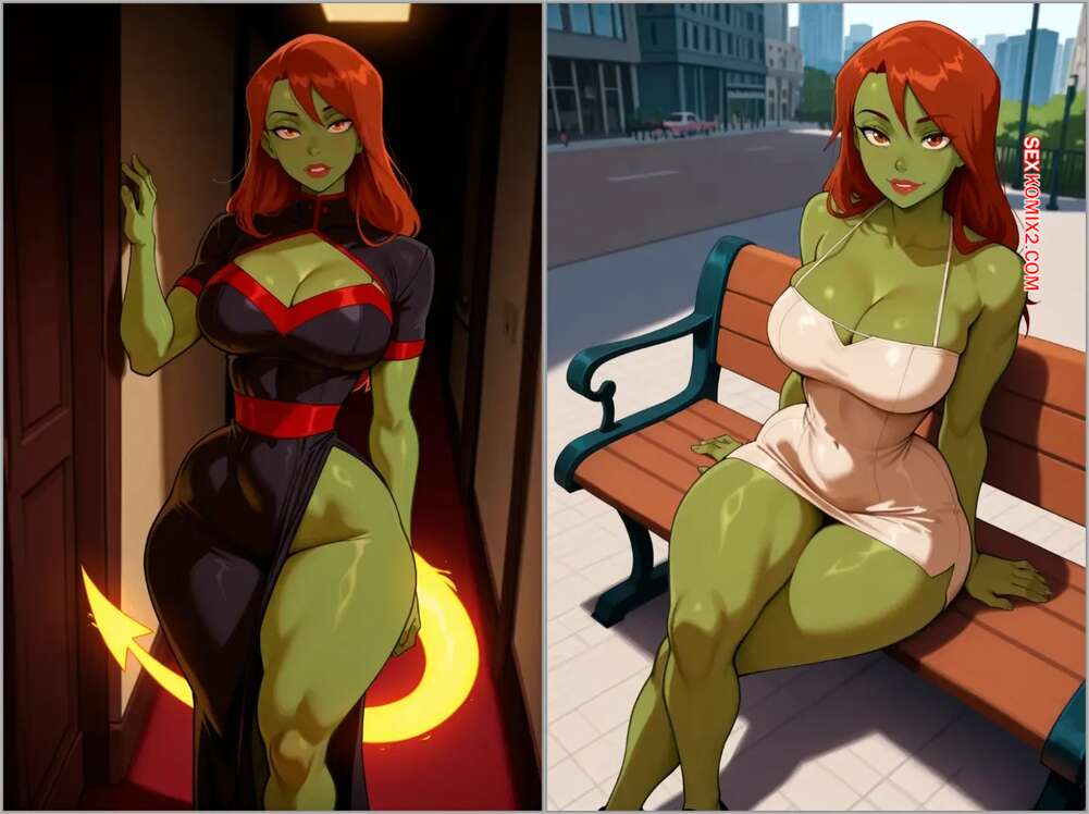 Comic porno Miss Martian. Obscuryotto La marciana pelirroja tiene un cuerpo espectacular. La belleza posa para su novio y lo seduce, luego le chupa el pene y abre las piernas, permitiéndole que la folle con ganas.