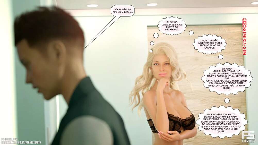 Porno comic Trick Or Treat. Timmy Strikes Back 11. Pegasus Smith Uma MILF loira e sensual estava a experimentar lingerie sexy no seu quarto para tirar fotografias para Timmy, mostrando o que o esperava no próximo encontro. O filho da beldade entrou no quarto de repente, e ela reparou que ele olhava fixamente para o seu corpo deslumbrante. Isso inspiroua a aprender mais sobre mulheres maduras.