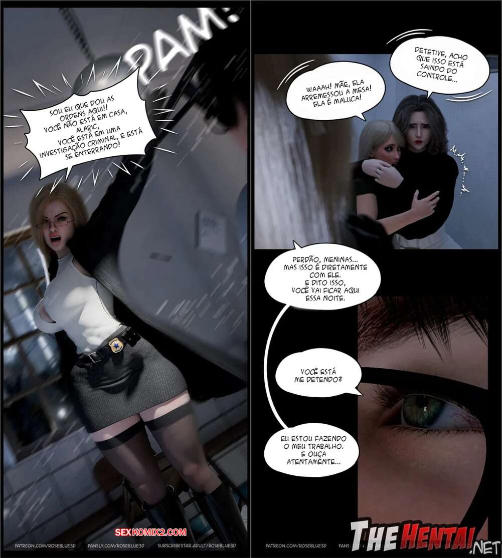 Porno comic My Neighbors Widow 44. Rose Blue 3D Alaric acabou na esquadra, onde foi levado para interrogatório por uma detetive sexy. Ela começou a fazer perguntas, mas ele não conseguia tirar os olhos dos seus enormes seios.